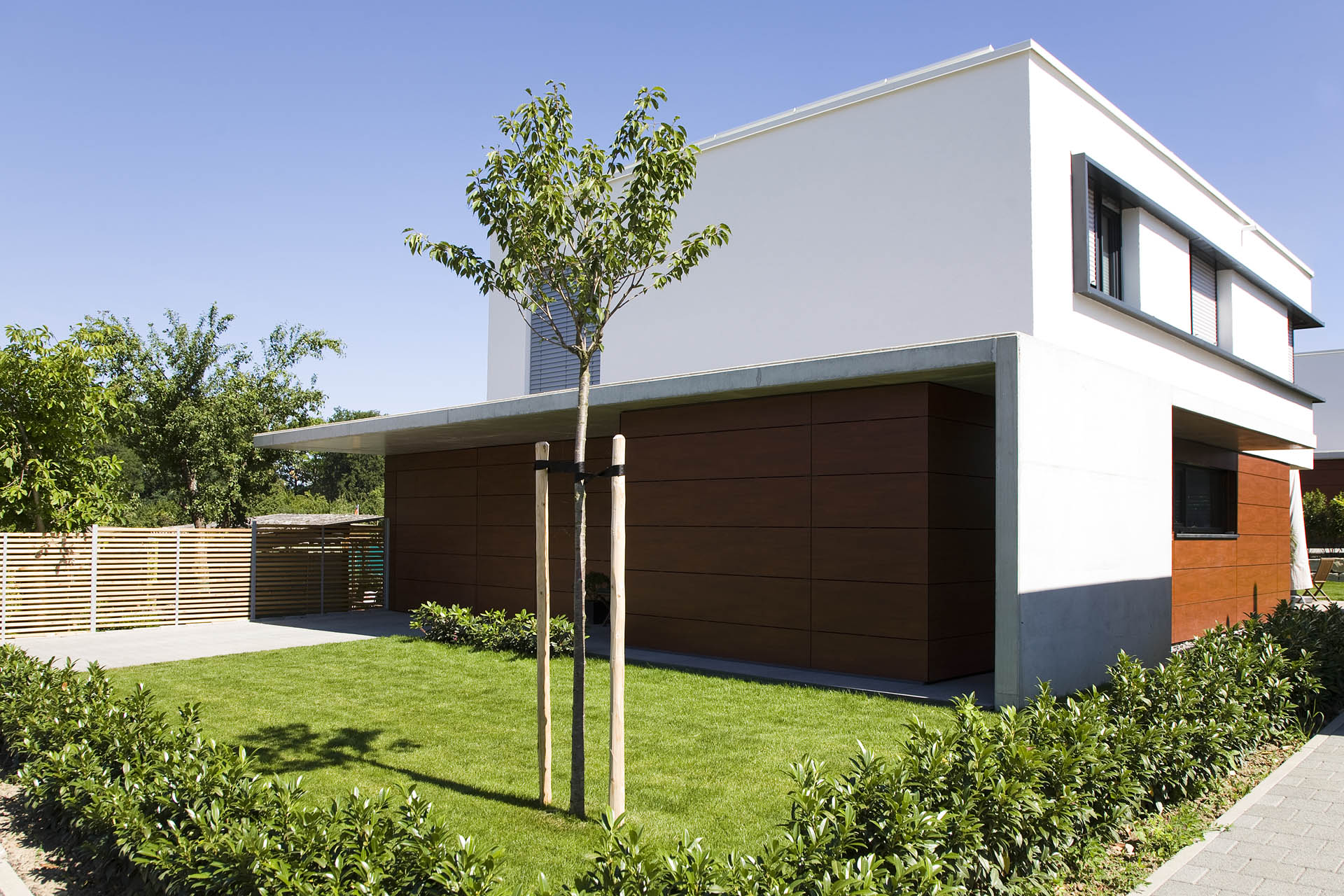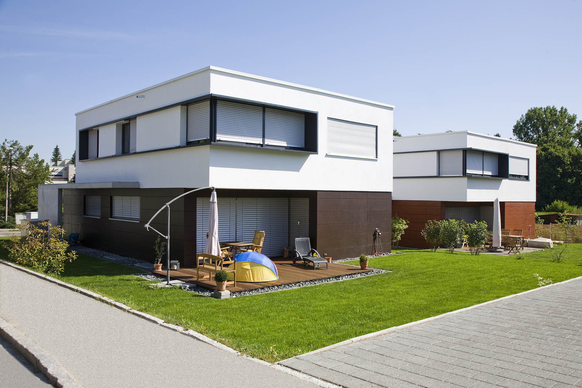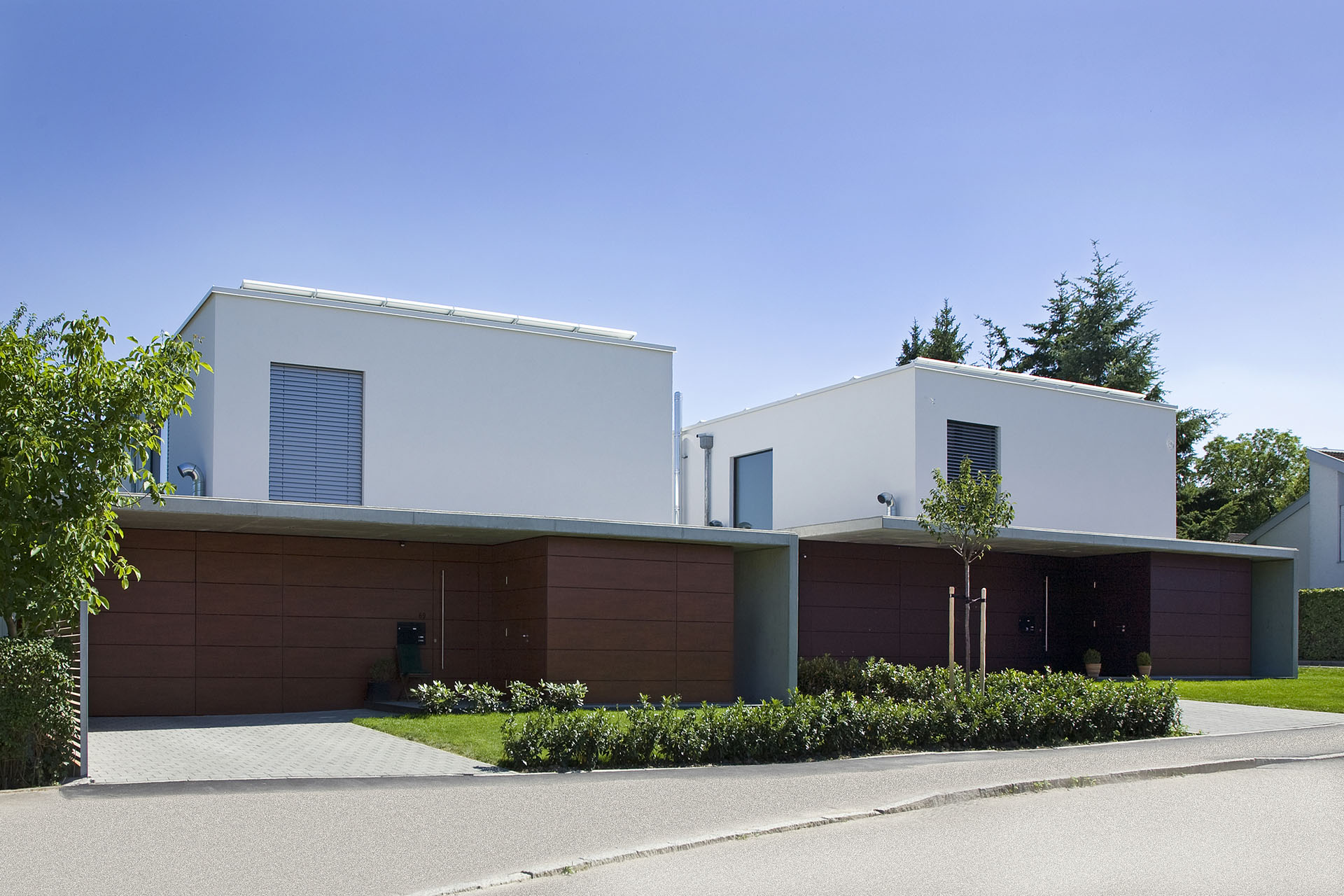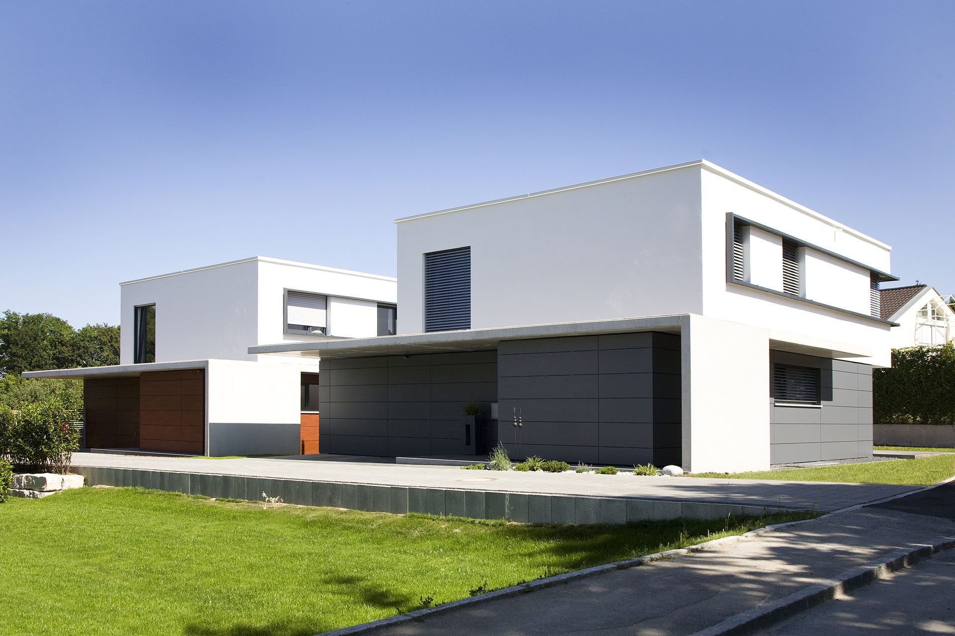 Für die Ulmer Firma EXTERNI Wohn- und Gewerbebau GmbH & Co. KG wurden 4 Einfamilienhäuser mit Garage geplant und realisiert. Die Häuser wurden gemäß dem Grundsatz „Licht ist Leben“ entworfen. Überdurchschnittlich viele Fensterflächen dienen dem gesteigerten Wohlbefinden der Bewohner. Die Raumaufteilung konnte aufgrund der flexibel geplanten Grundrisse von den Käufern verändert werden. Die Vorteile der Planung liegen in der modernen, geradlinigen Architektur. Durch die Flachdach-Bauweise sind beide Geschosse als Vollgeschosse nutzbar und es ergeben sich keine Einschränkungen in der Raumhöhe. Ein Vordach zieht sich bis zur Garage, so dass man trockenen Fußes den Eingang erreichen kann. Für Fahrräder gibt es einen separaten Raum.