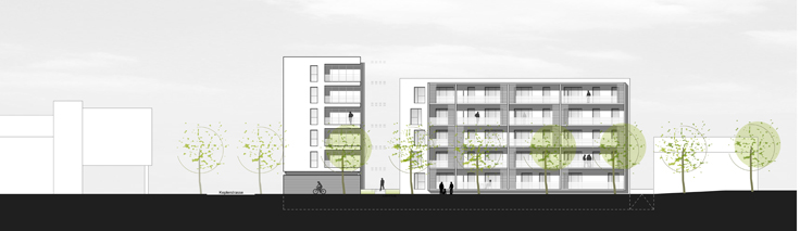 Im Norden der Innenstadt gelegen, ist die Neustadt ein Quartier, das durch Wohngebäude aus der Jahrhundertwende, alten Innenhöfen und einer Mischung von Wohnen und Arbeiten geprägt ist. Die aufgelöste Blockrandbebauung, die den ursprünglichen Charme des Quartiers ausmacht, wird in der heutigen Form von innerstädtischem Wohnen fortgeführt. Der richtungsweisende Baukörper entlang der Keplerstraße, der der neuen Bebauung sein Gesicht verleiht, erhält an der Südwestecke den höchsten Punkt, mit 6 Geschossen und nimmt im nördlichen Gebäudeteil die Höhe der Bebauung Schaffnerstraße auf. Das Gebäude entlang der verkehrsberuhigten Carl-Ebner-Straße, mit fünf Geschossen, ist Richtung Süden orientiert. Der dritte Baukörper im Innenhof, nimmt mit seinen vier Geschossen Rücksicht auf die Höhen der Bestandsbebauung. Dort sind die großzügigeren Familienwohnungen untergebracht.
