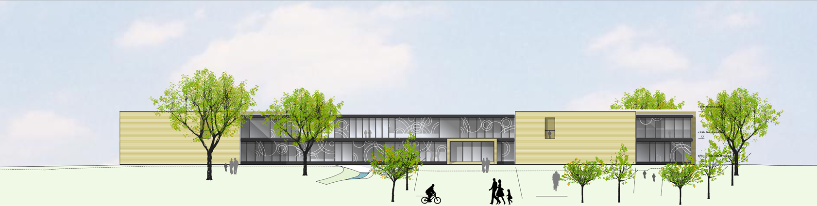 Aus dem Auslobungstext: Die Stadt Mengen beabsichtigt den Neubau eines Kinderhauses westlich der Kernstadt im Bereich des ehemaligen Stadtgrabens. Das Kinderhaus soll insgesamt für 12 Gruppen geplant werden. Die Realisierung ist in zwei Bauabschnitten geplant. Im ersten Bauabschnitt sollen zwei Gruppen 3-6 Jahre und 4 Krippengruppen und im zweiten Bauabschnitt 4 weitere Krippengruppen und 2 Gruppen Ü3 realisiert werden. Die auf dem Wettbewerbsgrundstück bestehende 3-gruppige Kindertagesstätte soll dabei im ersten Bauabschnitt erhalten bleiben. Für den mittelfristig folgenden zweiten Bauabschnitt (ca. 5-8 Jahre), steht dann auch die Fläche des heutigen Kindergartens zur Verfügung. Dieser wird dann aus wirtschaftlichen Gründen und mit dem Ziel eines stimmigen und nachhaltigen Gesamtkonzeptes abgebrochen.