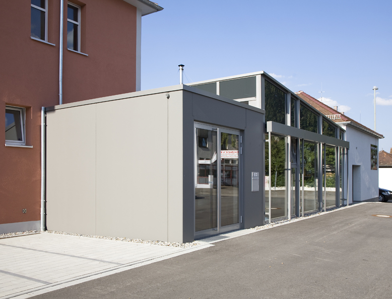 In der Blaubeurer Str. 71 wurde durch einen neu zu erstellenden Zwischenbau die ehemalige LKW Werkstatt und das ehemalige Verwaltungsgebäude verbunden und somit eine zusammenhängende Nutzfläche von ca. 500 m² geschaffen. Die geschaffene Nutzfläche sollte für spätere Nutzungen in bis zu vier einzelne Einheiten trennbar sein. Die WC- und Sozialräume der Fa. Aro wurden verlagert und innerhalb der bisherigen Verkaufsflächen vorgesehen. Die Park- und Freiflächen sollten neu erschlossen und gestaltet werden. Es wurde jedoch ein Gestaltungskonzept für das gesamte Areal des Grundstücks (inkl. Fa. Römer, Fa. Euromaster, Fa. Repro, etc.) erstellt.