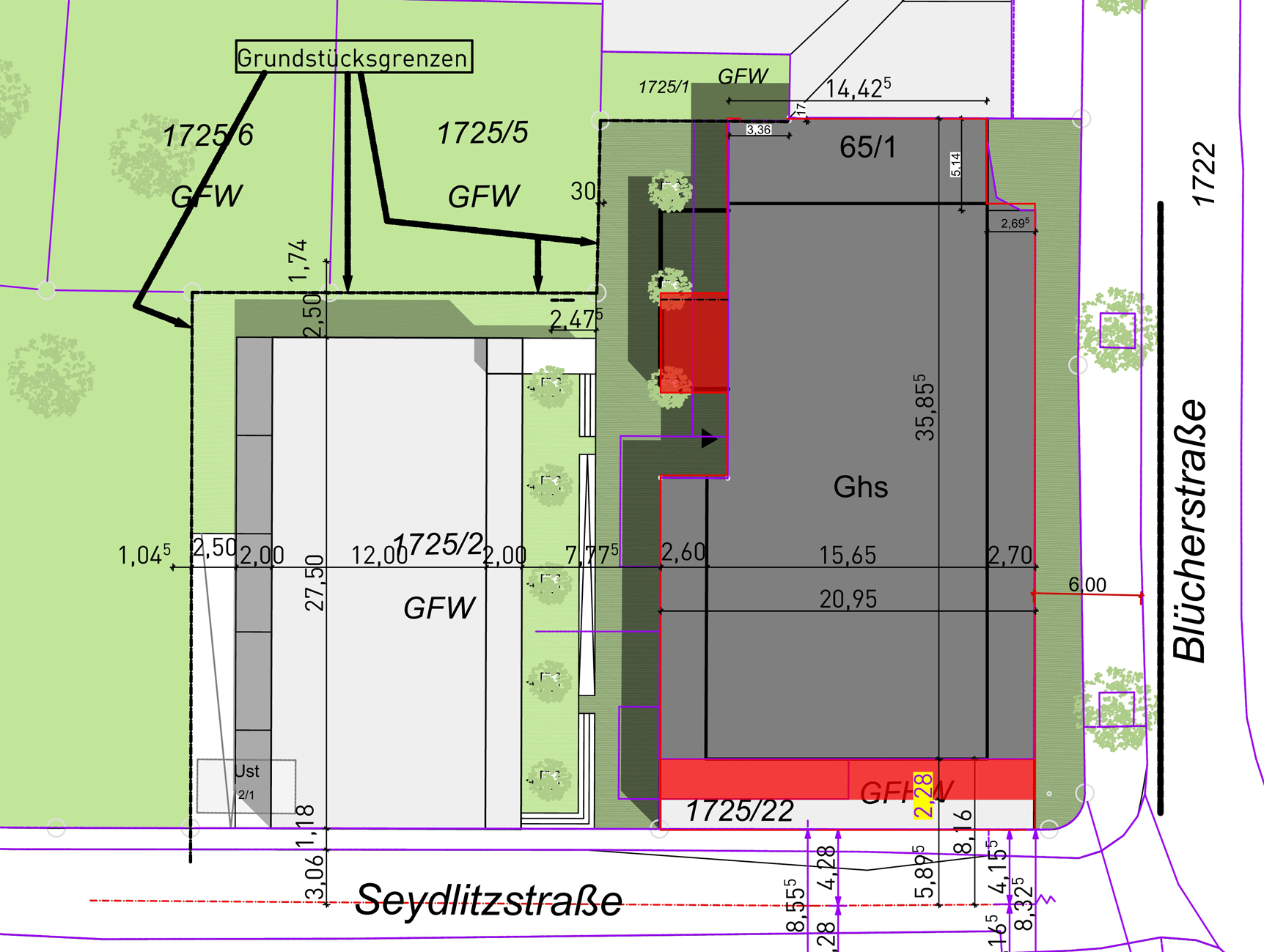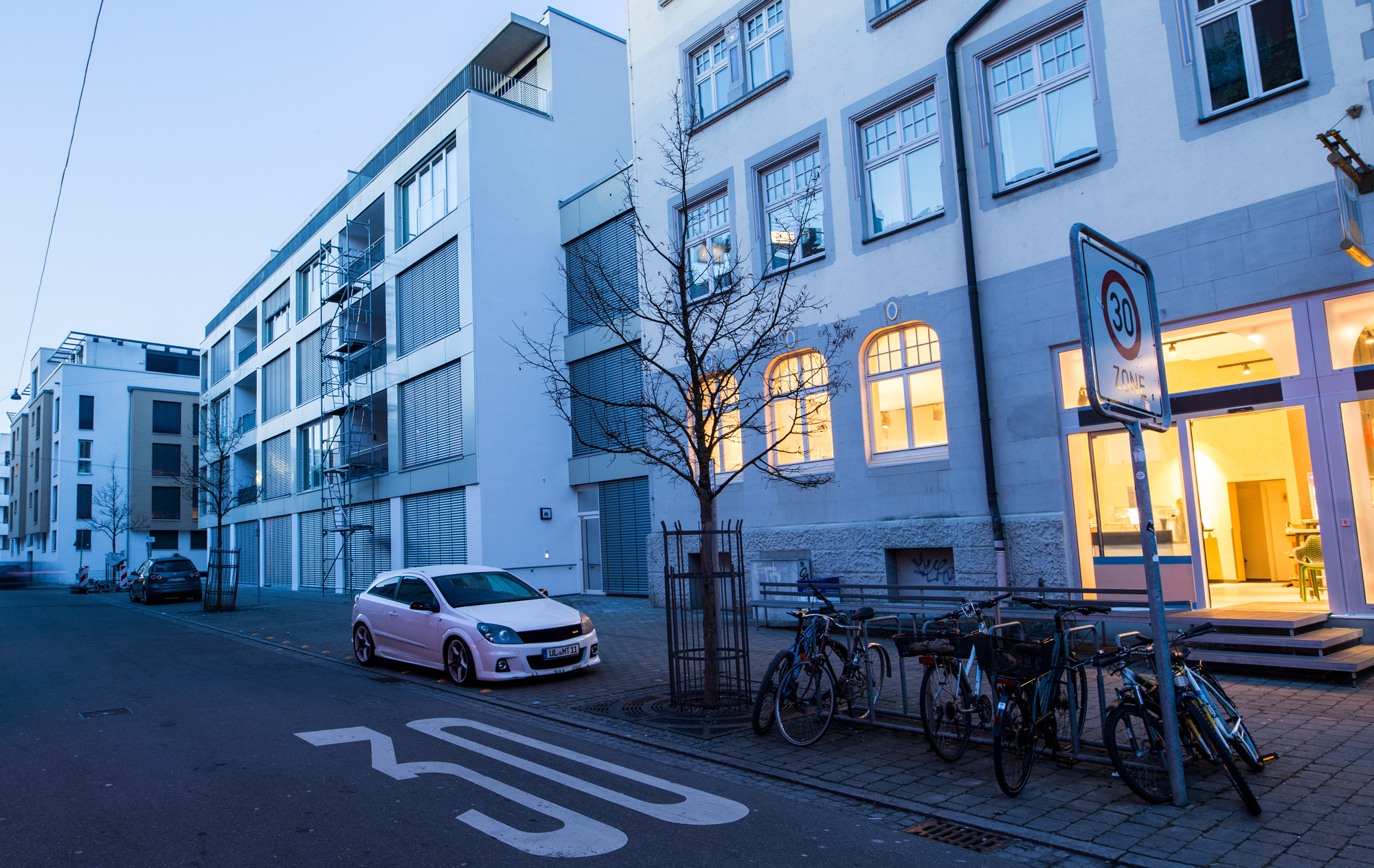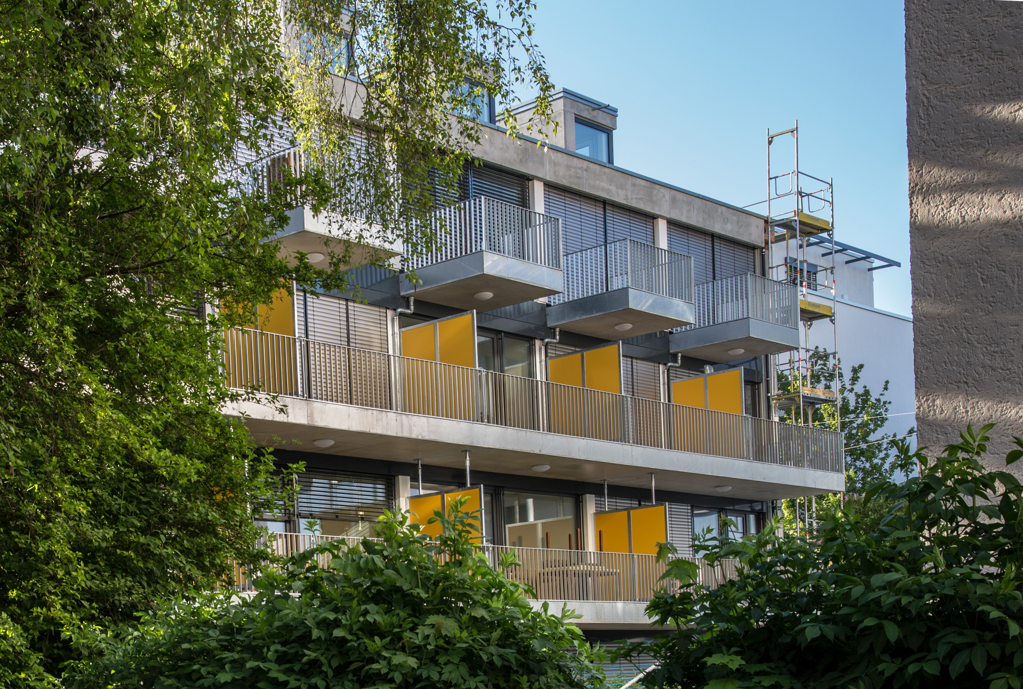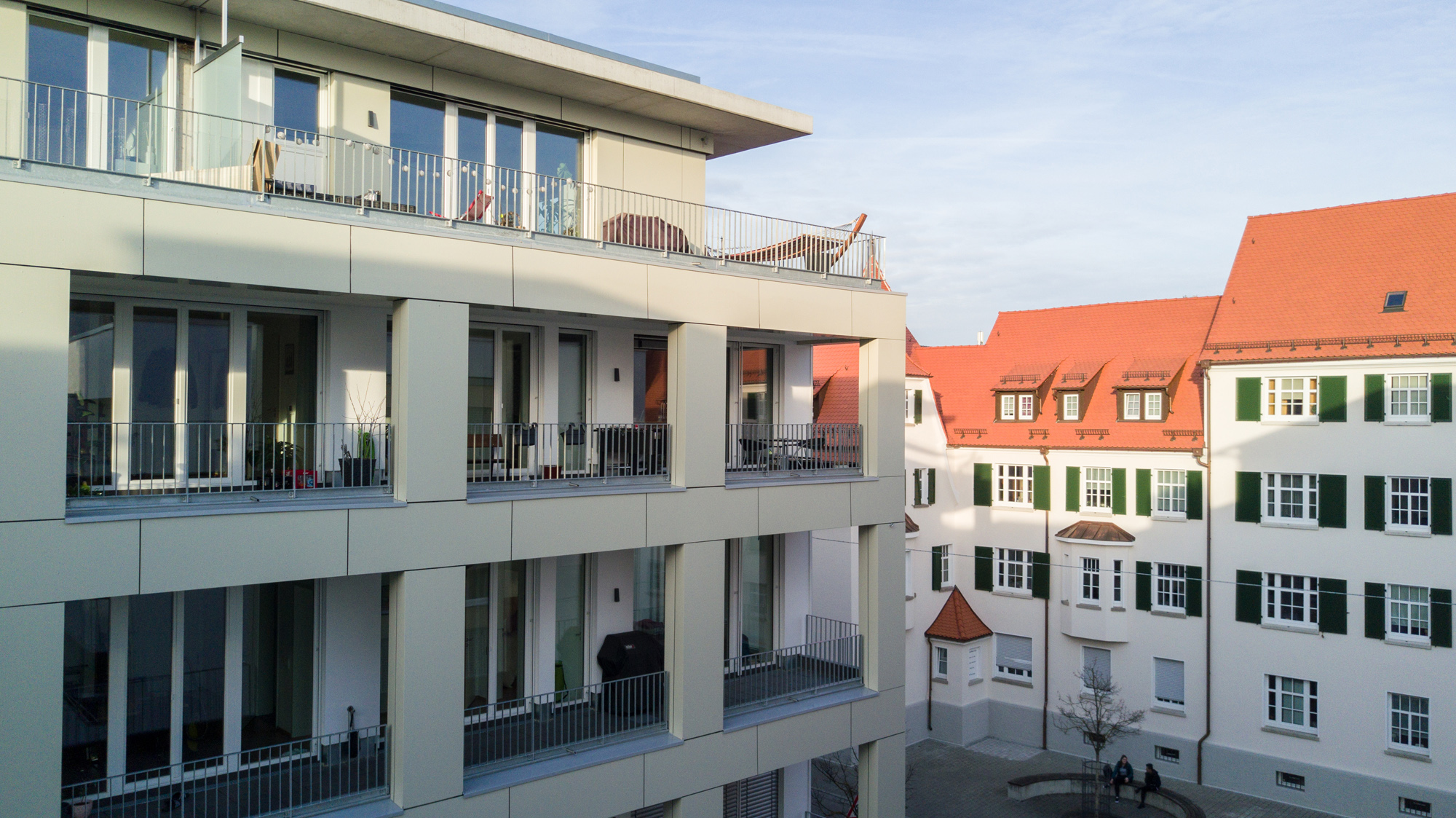 Der Neubau wurde konventionell in Massivbauweise errichtet. Es sind 13 Neubau-Wohnungen in attraktiver Citylage entstanden mit Wohnflächen von ca. 46–100 m² – von der Erdgeschoss-Wohnung mit Terrasse und Garten, über das 1-Zimmer-Apartment, bis zur 3-Zimmer-Maisonette-Wohnung mit Dachgarten. Unter dem Neubau befindet sich die Tiefgarage. Der Zufahrt hierzu erfolgt über zwei Pkw-Aufzüge.