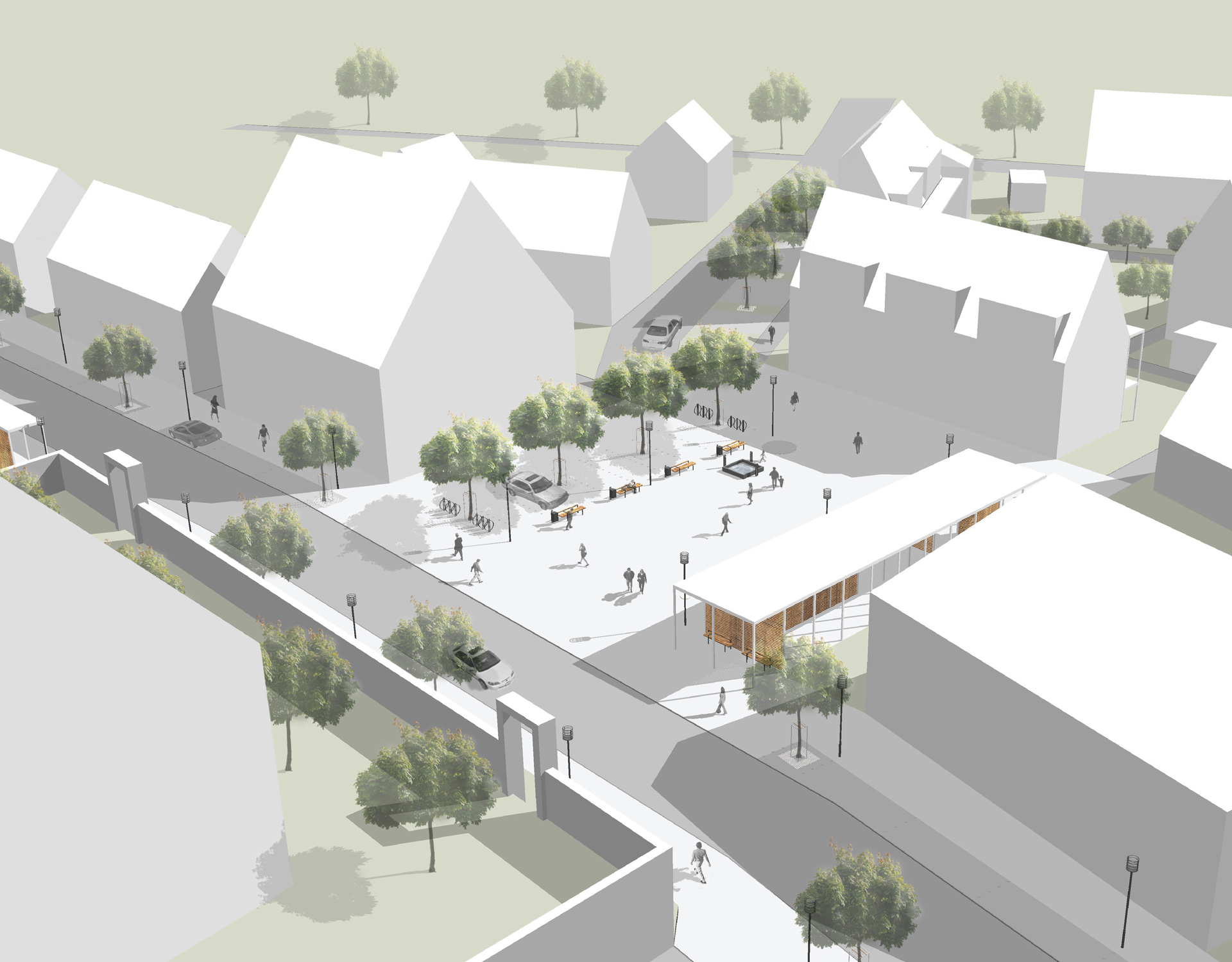 1. Preis der Arbeitsgemeinschaft Baron Landschaftsarchitekt, BDLA und Hullak Architekten beim städtebaulich-freiraumplanerischen Ideen- und Realisierungswettbewerb „Neue Mitte Ziemetshausen“. (zum Projekt, Competitionline)