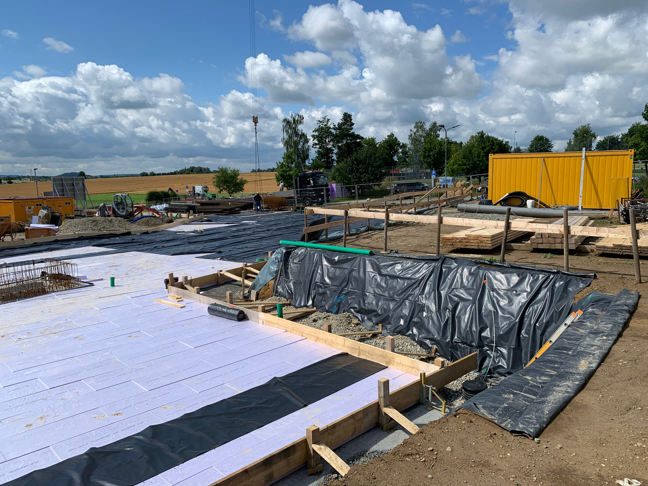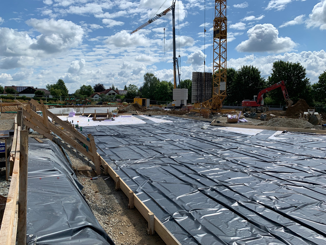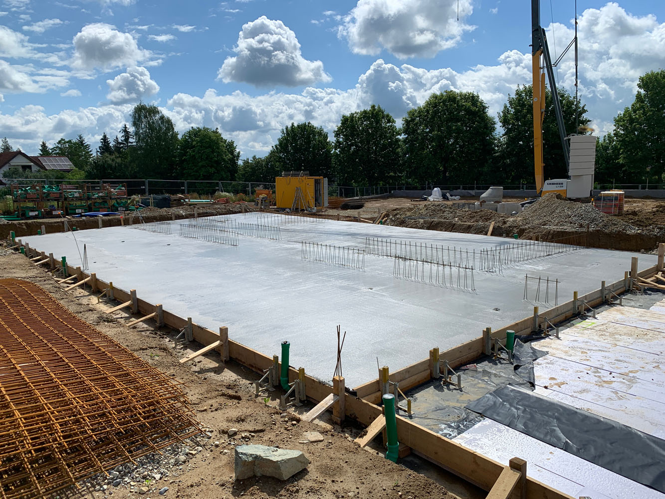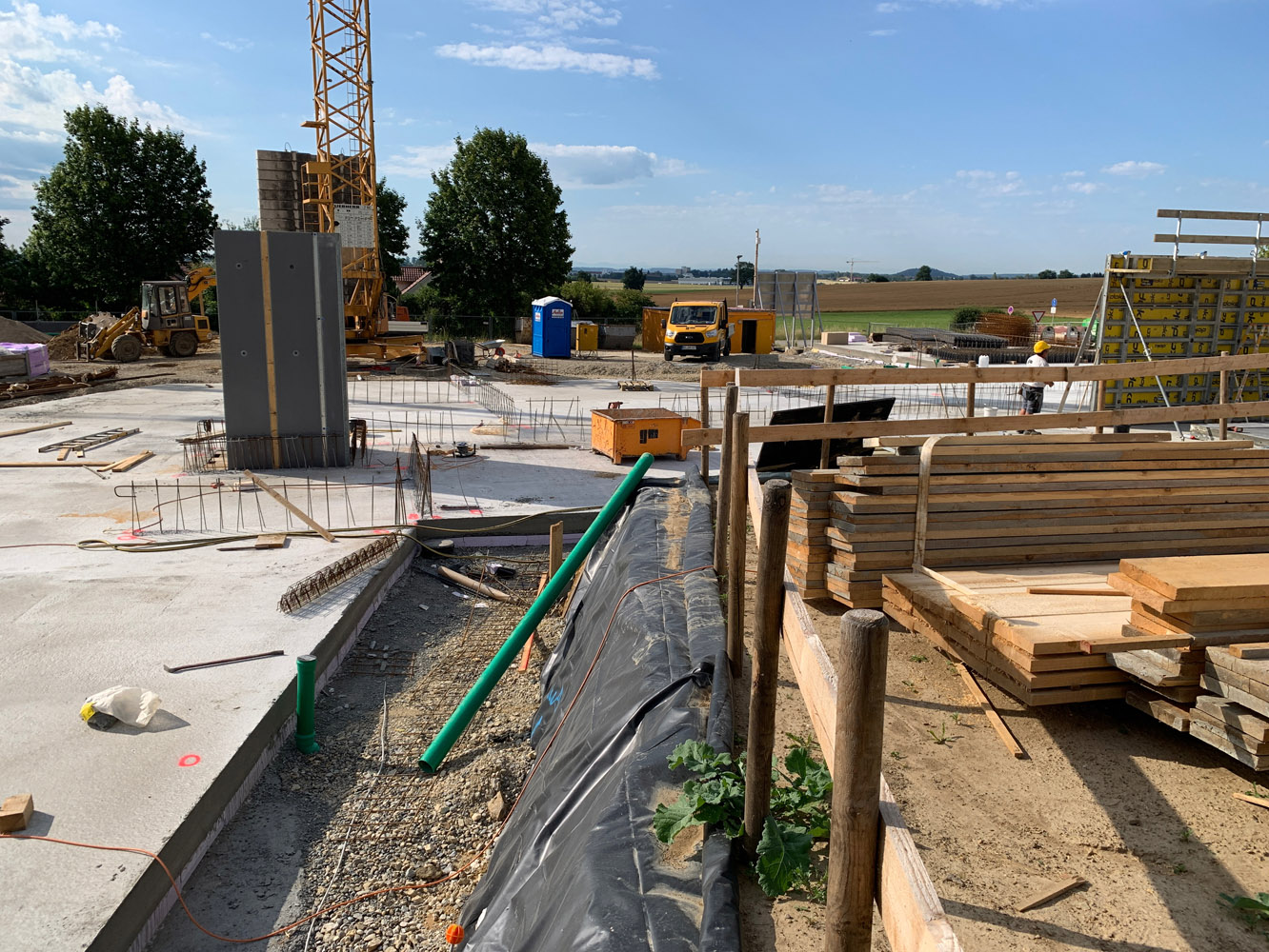 Hier die Fotos von der Bauleitung "Neubau Kita in Warthausen/Birkenhard" vom Juli 2020. (Visualisierung: Moka-studio im Auftrag von leupold brown goldbach architekten, Fotos: Jens Rannow)