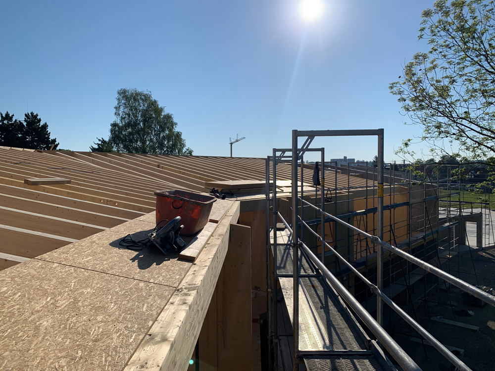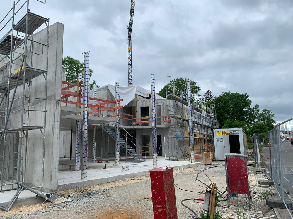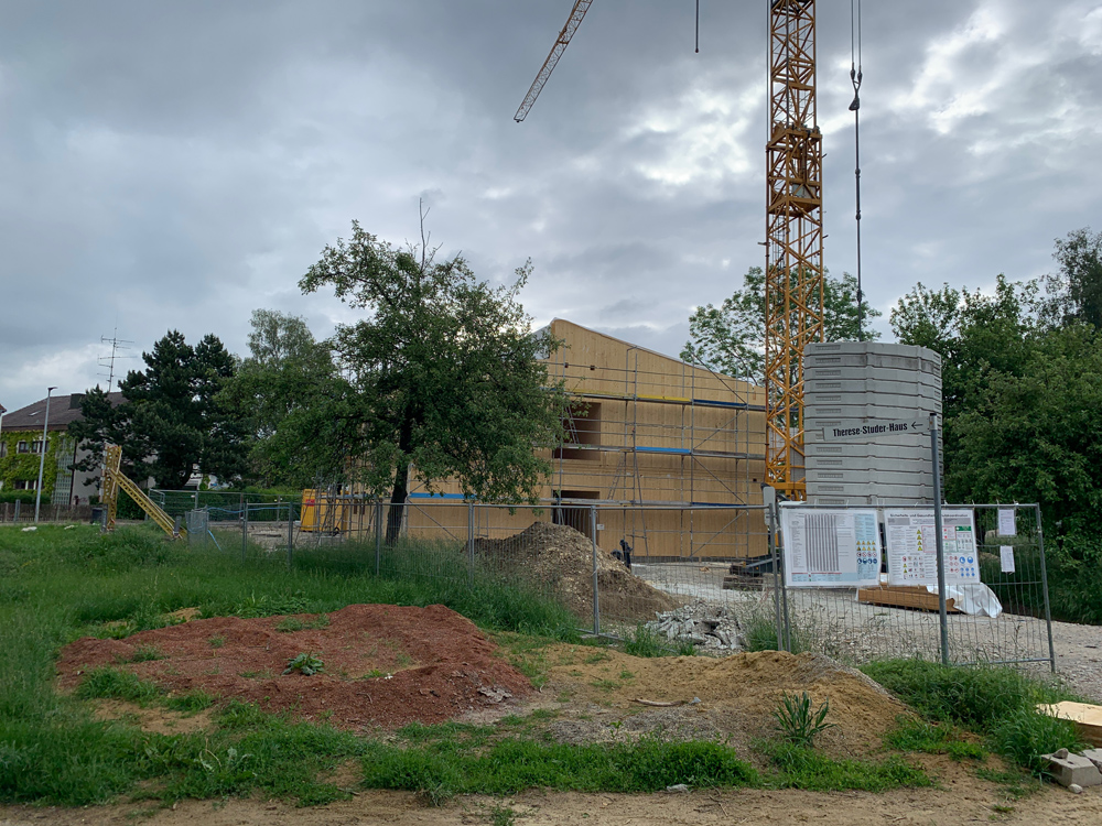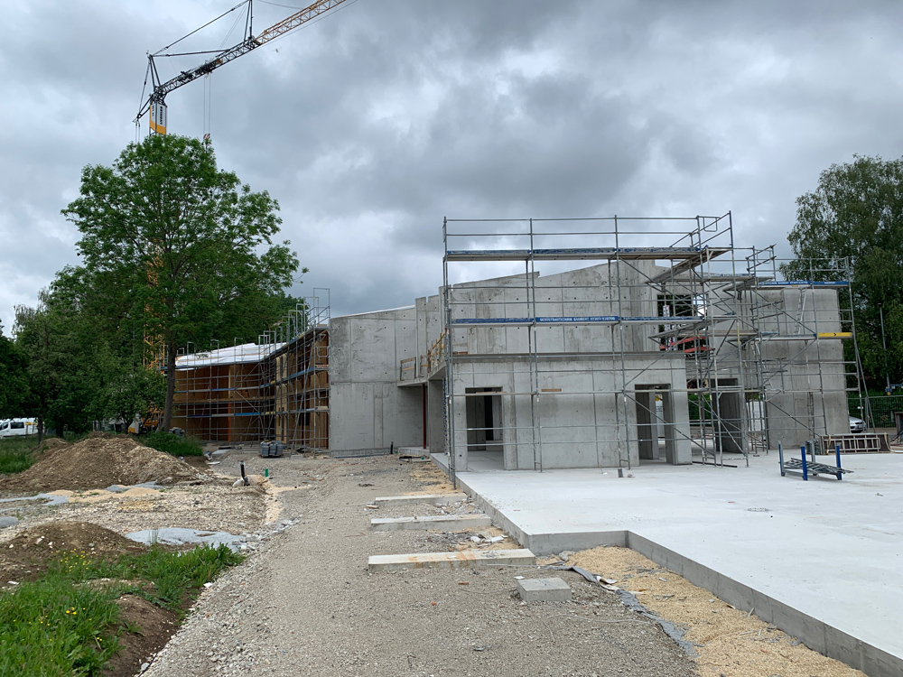 Auf diesen Fotos können Sie den Baufortschritt des Neubaus der Kindertageseinrichtung im Webereigelände in Senden ein wenig mitverfolgen. Jens Rannow macht hierfür die Bauleitung. Hier die Fotos vom Monat Mai. (Visualisierung: John Zapf im Auftrag von leupold brown goldbach architekten, Fotos: Jens Rannow)