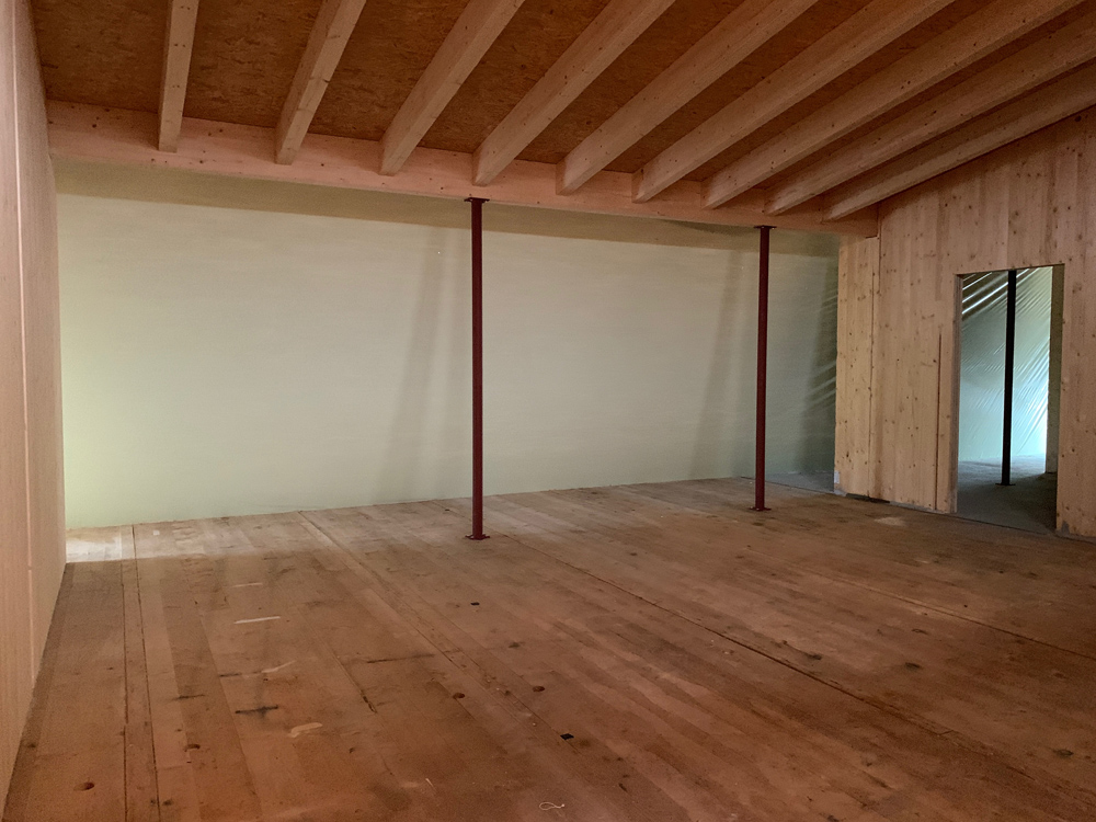 Interessant ist der Unterschied in der Bauweise im Vergleich zu der Kita in Birkenhard zu sehen, die ebenfalls von leupold brown goldbach architekten gebaut wird. Hier werden Holzmassivelemente mit Betonteilen kombiniert. In Birkenhard dagegen wird betoniert und gemauert.