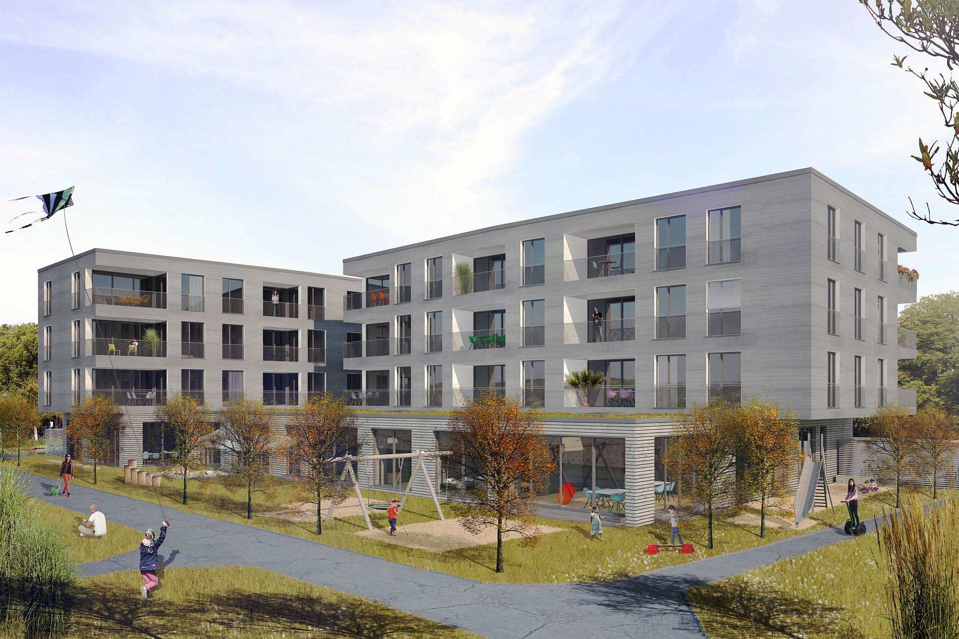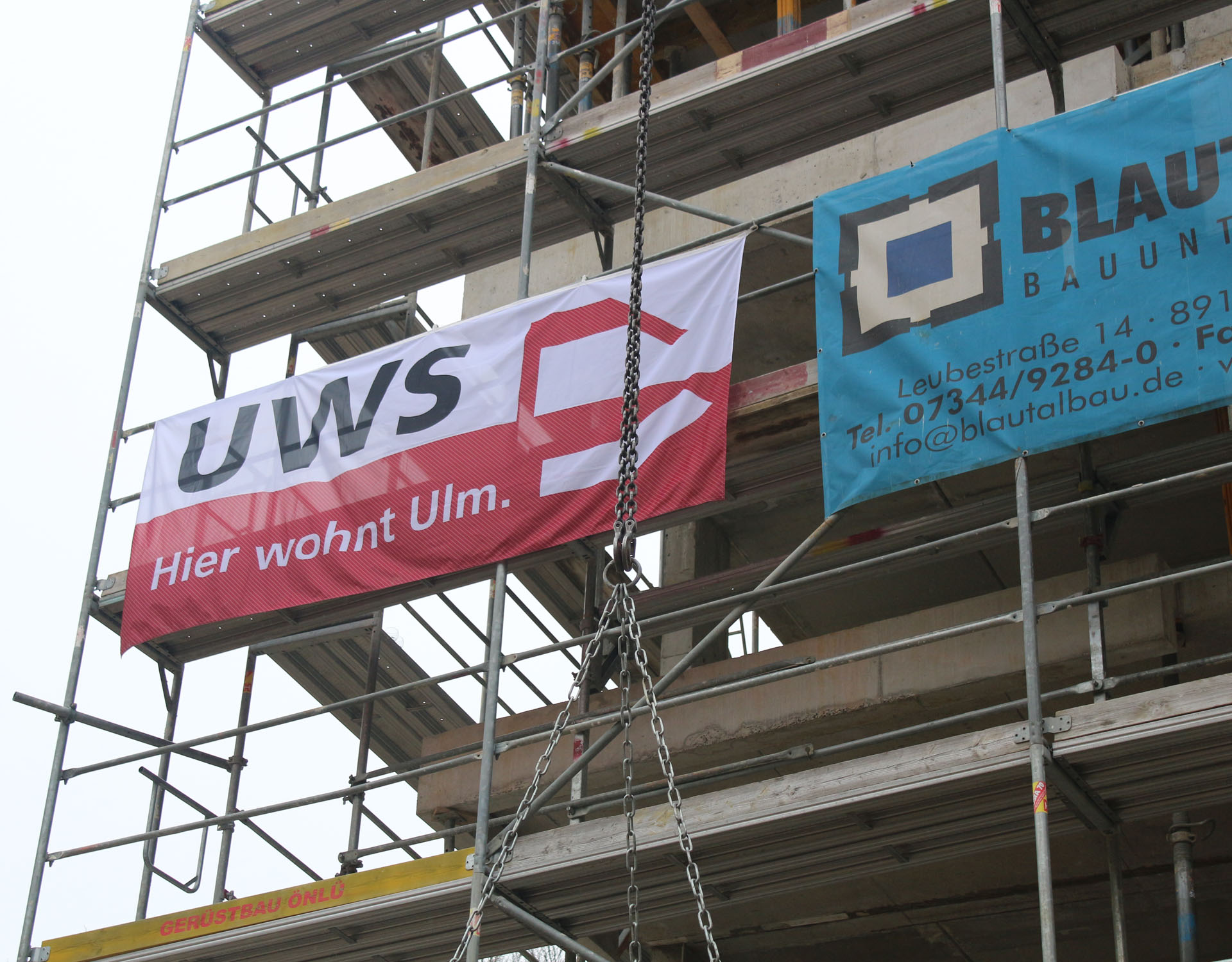 Auf der Baustelle im Wiblinger Hart 4 wurde am 5. März 2020 Richtfest gefeiert. Es war sogar ein Doppelrichtfest. Der Bauherr, die Ulmer Wohnungs- und Siedlungs-Gesellschaft mbH, baut gleichzeitig im Wiblinger Hart und an der Kemptener Straße 15 in Ulm – Wiblingen. Im Sommer 2017 konnten Hullak Rannow Architekten* das Gutachterverfahren im Wiblinger Hart 4 – Neubau mehrgeschossiger Wohngebäude mit integrierter KiTa für sich entscheiden. Das Projekt wurde von Hullak Rannow für die UWS Ulm geplant. Die Bauleitung macht die UWS selbst. Es ist geplant, die Kindertagesstätte im März 2021 zu eröffnen. Die 24 Wohneinheiten sollen Anfang nächsten Jahres bezugsfertig sein.