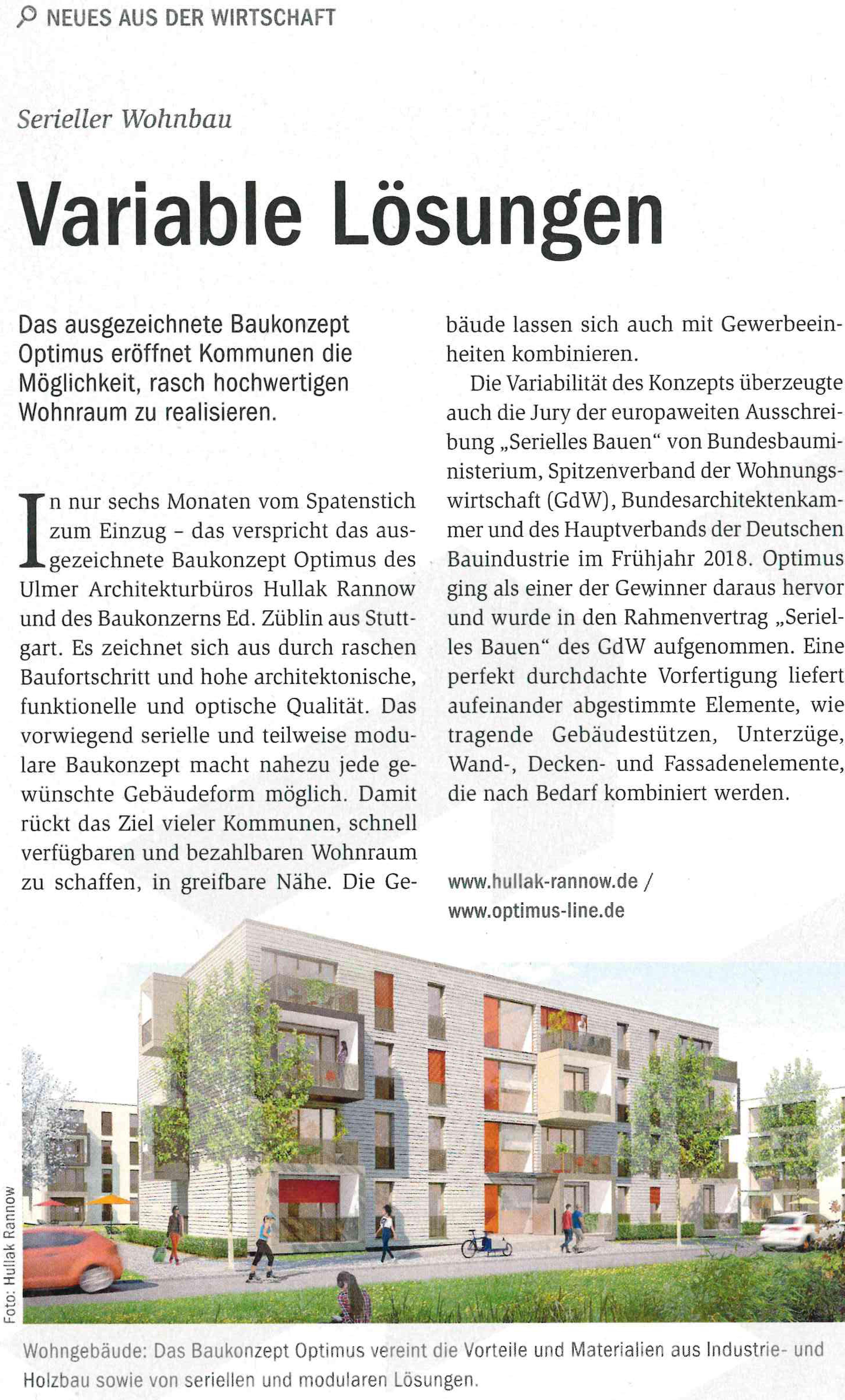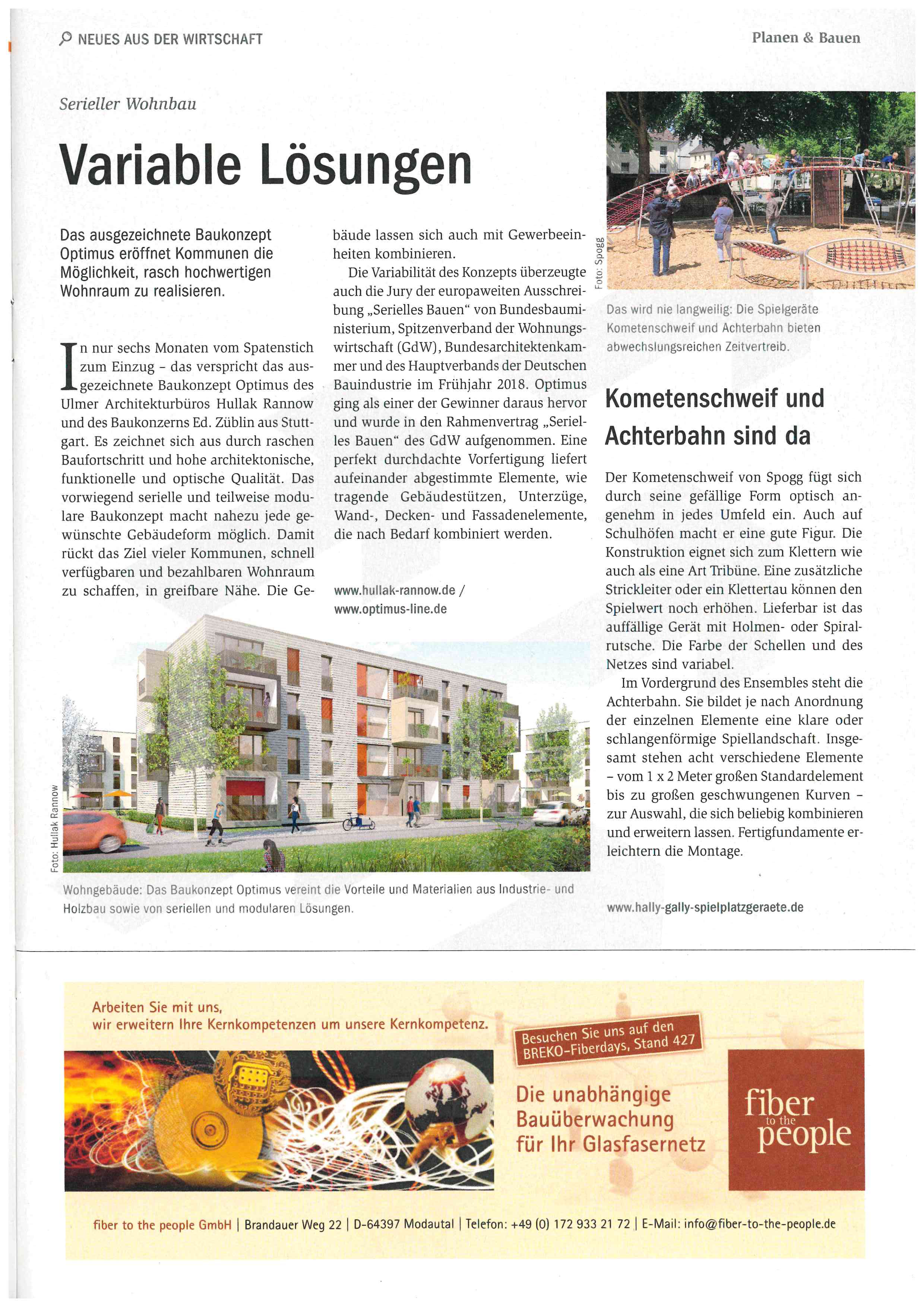 In der Ausgabe 3/2019 wird in "der gemeinderat" über unseren "Optimus" berichtet. Sie finden den Artikel unter der Rubrik "Planen & Bauen, Neues aus der Wirtschaft" auf Seite 35.